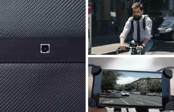 如果怀揣全副身家过于紧张,还可以打开 LUMZAG 背包的高清后视摄像头,通过手机即可实时查看周围情况,不用再左顾右盼。