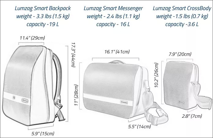 LUMZAG一共有 3 款,包括背包、信差包、斜挎包,功能相同,但各自适用的场合不同。