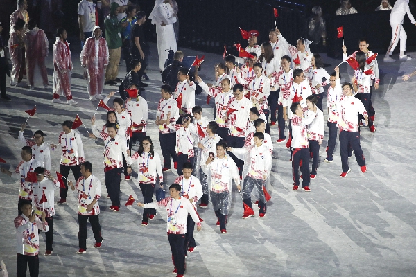 中国代表团共有75名运动员参加闭幕式,其中,女子轮滑运动员郭丹担任中国代表团的闭幕式旗手。这位28岁的北京姑娘,是第一位参加过冬奥会和夏季亚运会的中国运动员,是跨界跨项选手的突出代表。