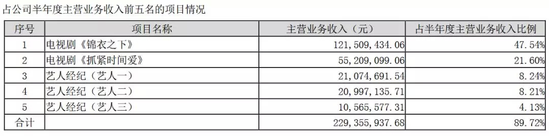 而具体的营收来源则为《锦衣之下》和《抓紧时间爱》两部电视剧,以及三位没有被点名的艺人。