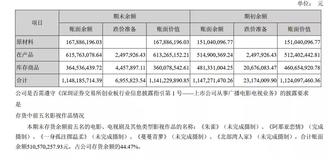 唐德的库存账面价值高达11.24亿,除去正在摄制的项目金额5.11亿,其余的金额很可能是《巴清传》的存货余额。