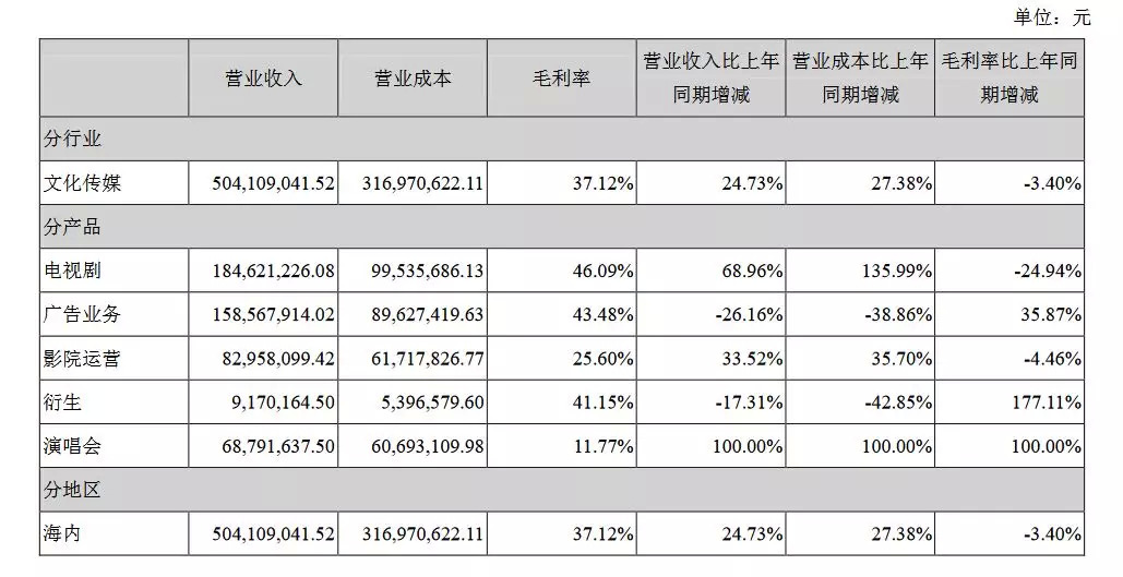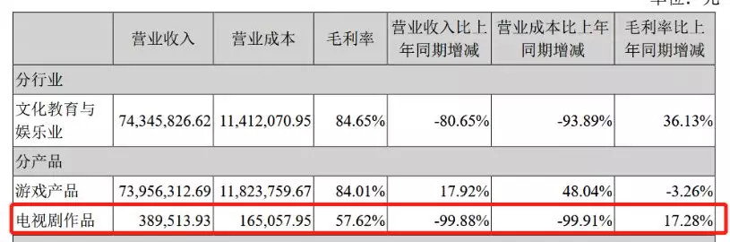 其影视剧制作领域的营收为所有收入中最低,导致总体收入严重缩水。