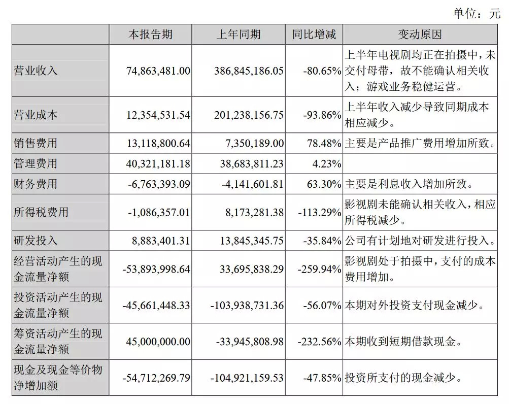 报告显示,收入主要来源于全资子公司欢瑞影视的电视剧发行收入、艺人经纪收入以及网络游戏收入。