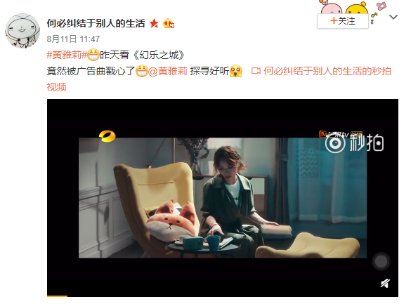 音乐类综艺与我而言,本就有着致命的吸引力,正当我沉浸在唱演嘉宾的精彩演出中,百无聊赖地等着主持人何炅串词时,迎接我的是始料未及的一幕。还是类似的一镜到底,开头我就看到了黄雅莉手机屏里的植入,小狐狸靠枕也不错(不过有点像三只松鼠),但直到最后探探LOGO和Slogan出现,我才恍然大悟,原来这一整个MV都是个广告啊,简直防不胜防!而网友对此的评论也大多积极正面,“好好听”、“高级的广告”、“这广告不错诶”、“竟然被广告曲戳心了”、“觉得广告拍得比正剧好看”。