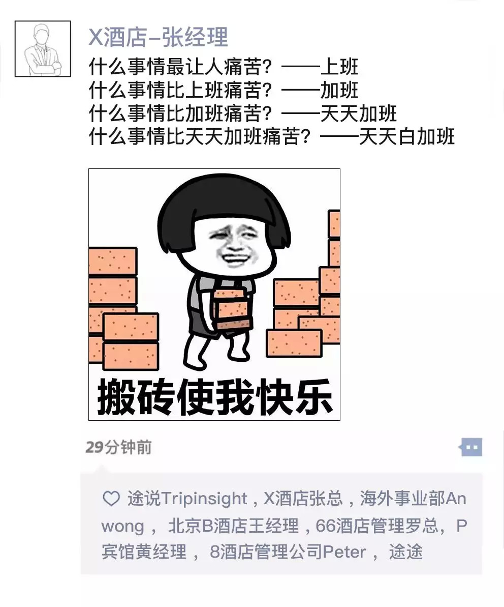 最近看到一个酒店人的朋友圈: