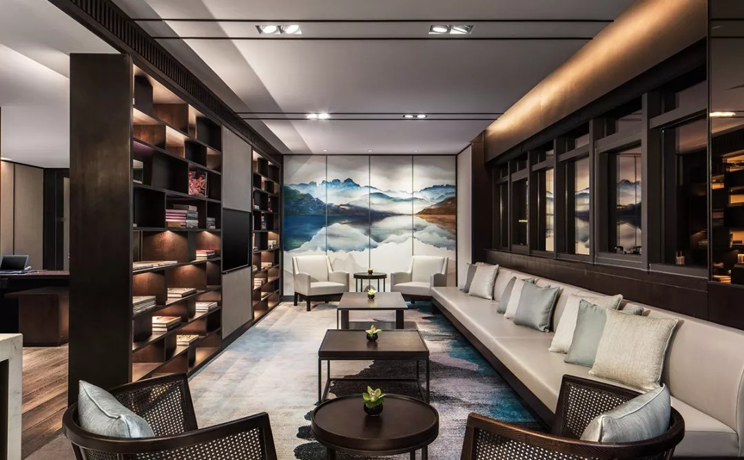 行政酒廊作为一个休闲之地,为了迎合不同人群的需求,一般都有明显的区域划分,例如会有就餐区,会客区。