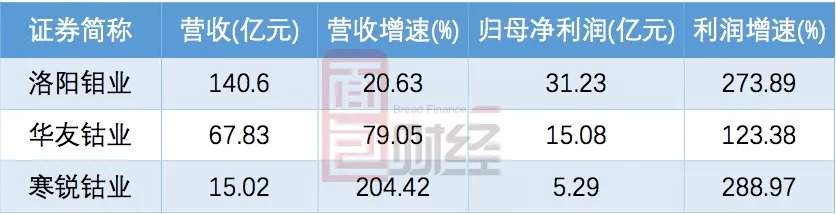 三家公司的股价也早已先涨为敬。2017年二季度至2018年一季度,次新股寒锐钴业领跑,涨超160%;华友钴业涨超120%;洛阳钼业涨超80%。