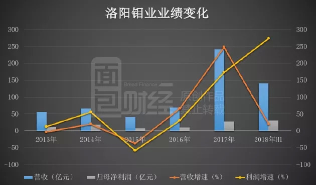 随着收购业务并表,以及钴价上涨,洛阳钼业近年来利润大幅增加。以下为根据财报绘制的公司业绩变化: