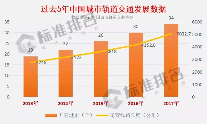 根据中国城市轨道交通协会的数据显示,截止到目前,中国内地共计有35个城市开通了城市轨道交通并投入运营,开通城轨交通线路165条,运营线路长度达到5055公里左右(含今年8月新开通的乌鲁木齐一号线)。