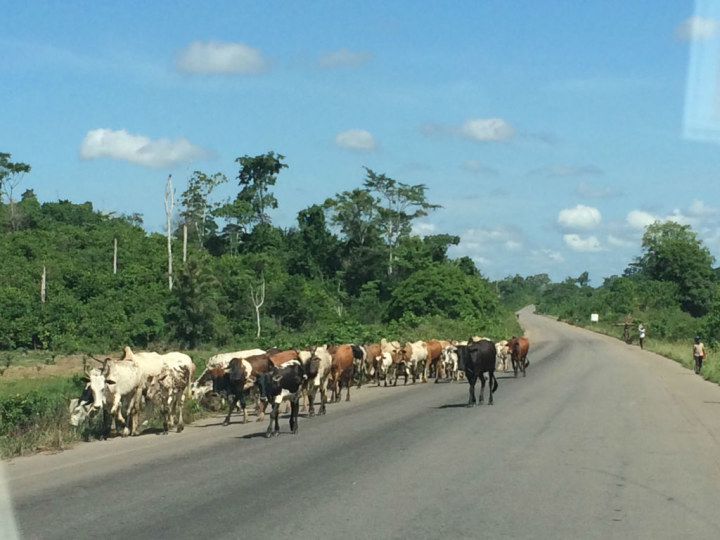 房间看上去还成吧,除了蚊子至少有一百只,床单基本没洗过,厕所马桶无坐垫以外。由于一整天实在太劳累了,倒也睡得踏实。第二天上午就是被林间鸟叫声唤醒的,我们又是大早就上了回阿比让的路途,又开了七个小时的车,又吃了些终身难忘的食物,颠颠簸簸回到了首都。