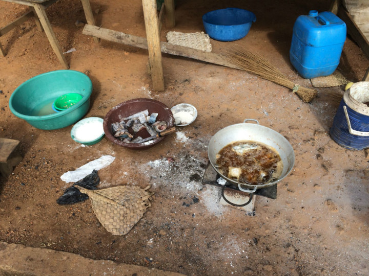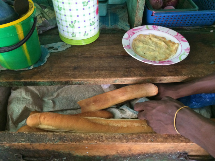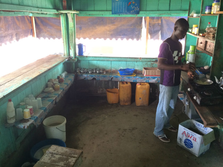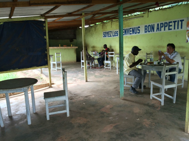 我之前传过阿比让路边烧鸡的照片,附言说这种东西吃了我在法国的保险估计就买值了。现在想起来真的是太天真了,因为一出了阿比让可以吃到的饭就更加不堪入目了。几张照片首先是我们第二天回程时吃的早餐,地点在一座叫做加尼奥阿小城市路边的酒吧: