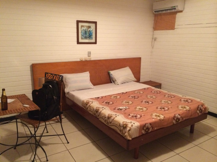 由于在工地现场花耗的时间远超过预期,晚上又和大坝经理会谈了一个多小时。我们不得不选择在苏布雷当地过夜。在非洲小城市中住宿和吃饭是一个道理,没有太多的选择,我们下榻了一家号称当地最豪华的宾馆房费还用欧元结算,折合成人民币大概400元钱。