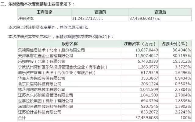 8月31日,乐视网发布控股子公司完成工商变更的公告称,控股子公司“乐融致新”已办理完毕注册资本变更等工商登记手续。