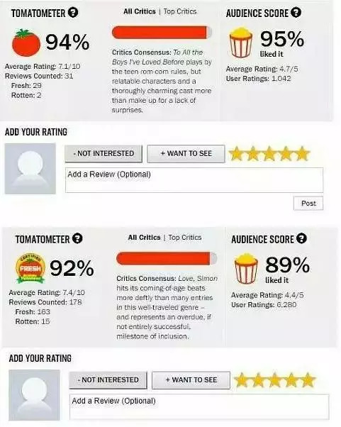 而这部以亚裔女性为主角的《致所有我曾经爱过的男孩》,一上映就收获如潮好评,同为青春校园片,本片烂番茄指数高达94%,观众爆米花度也在95%,打败了《爱你,西蒙》的92%和89%。