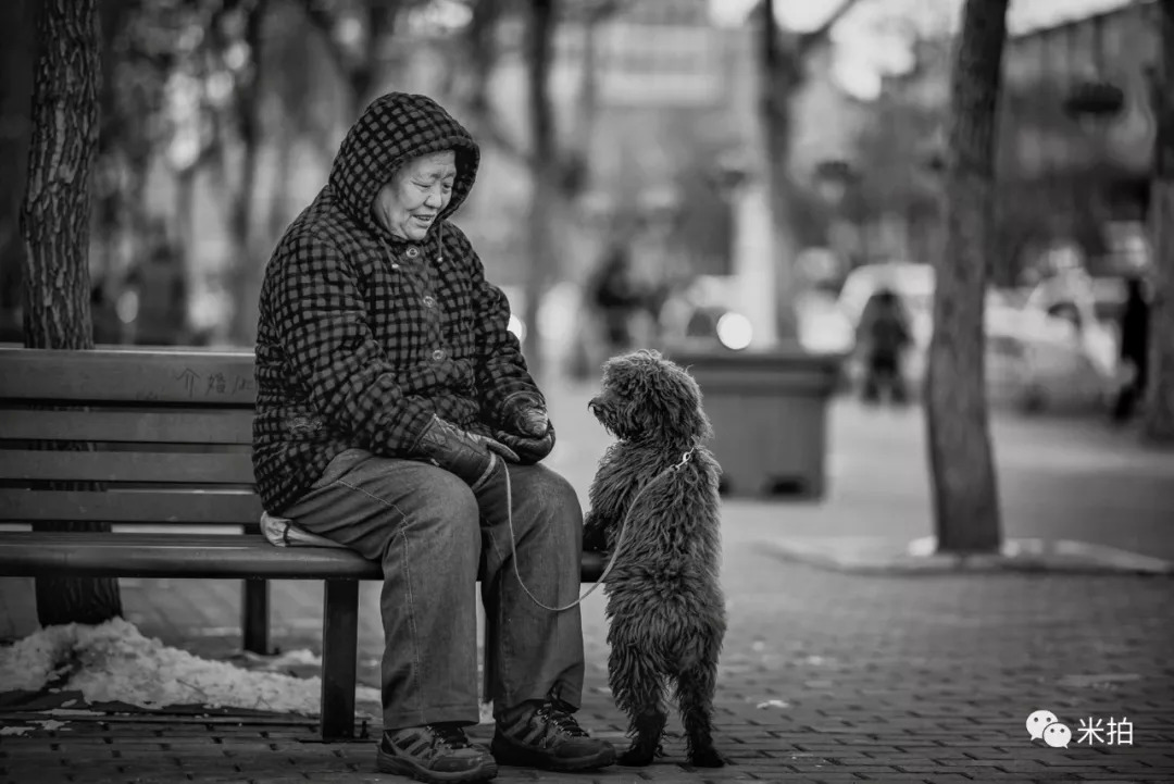 李春的照片中,人与狗相互依靠,相互陪伴。