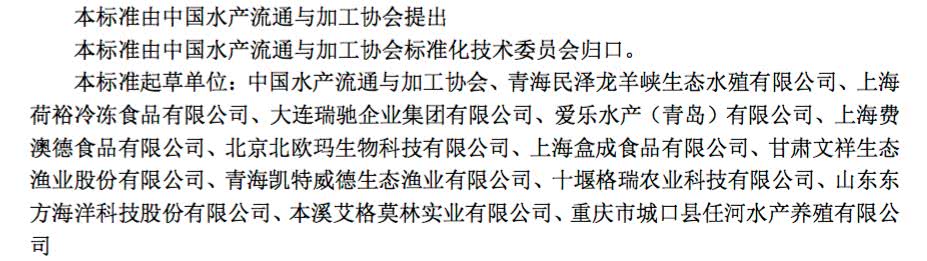 最精彩之处在于,《标准》的制定方共有14家,包括水产协会自身及13家企业,而上述7家企业全部位列其中。