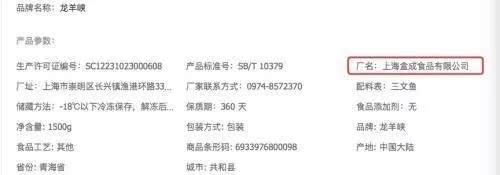 据每日经济新闻报道,在某电商平台上,“龙羊峡”三文鱼品牌的厂商,为上海盒成食品有限公司。