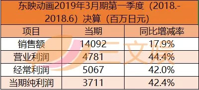 而今年7月27日东映动画发布新一季度(2018年4月-2018年6月)财报,数据显示,本季度销售额140.92亿日元,同比增长17.9%,与去年同期相比增长19.9%。营业利润47.81亿日元,同比增长44.4%。当季纯利润37.11亿日元,同比增长42.4%。