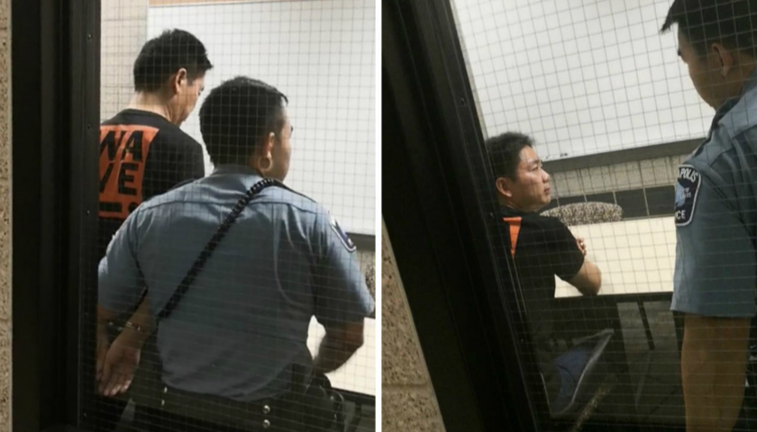 随后华尔街日报发布了刘强东上周五晚在明尼苏达大学被捕时的视频截图照片。