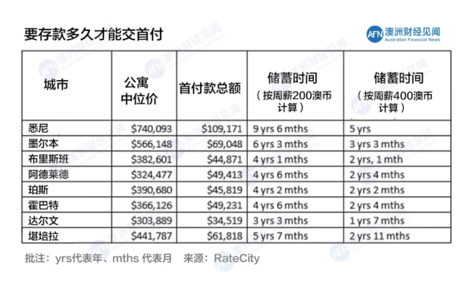 根据数据计算得出,为了承担 740,093澳元单位公寓中位价的10%的首付款,如果购房者每周赚200澳元,那么他不得不储蓄整整9年零6个月。