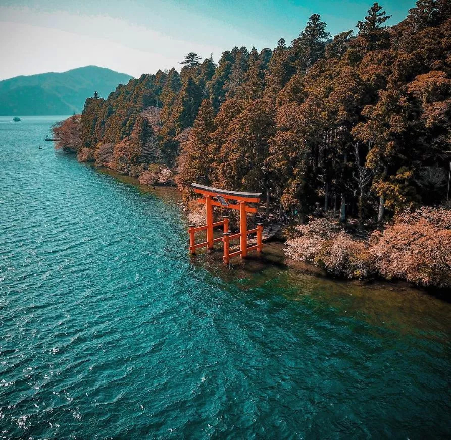 芦之湖是一座以眺望富士山美景而闻名的火口湖,芦之湖对岸的富士山、湖上的海贼船及湖畔的箱根神社,都是箱根最具代表性的风景。