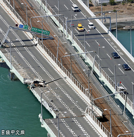 日本气象厅首席预报员称,“飞燕”以每小时216公里的速度登陆,是1993年以来日本遭遇的最强台风。相关人士透露,若受灾严重,跑道和航站楼恢复使用可能需要一周左右时间。联络桥何时修复尚无头绪,势必面临长期停用。