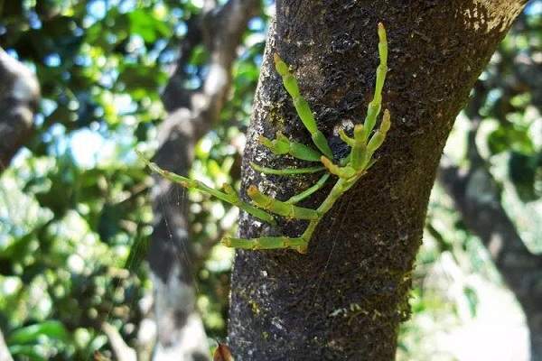 何为螃蟹脚?顾名思义,即长相类似螃蟹的脚的样子,或是形似螃蟹的脚之类的寄生植物。别称除了学名“螃蟹脚”之外,还有诸如枫香槲寄生、枫树寄生、桐树寄生、赤柯寄生等称呼。常出现在海拔200-750米(西南地区1100-2500米)山地阔叶林中或常绿阔叶林中,寄生于枫香、油桐、柿树或壳斗科等多种植物上。此外,因螃蟹脚属于寄生类植物及其种类不同的缘故,因此他们的果实和颜色有稍微差别。