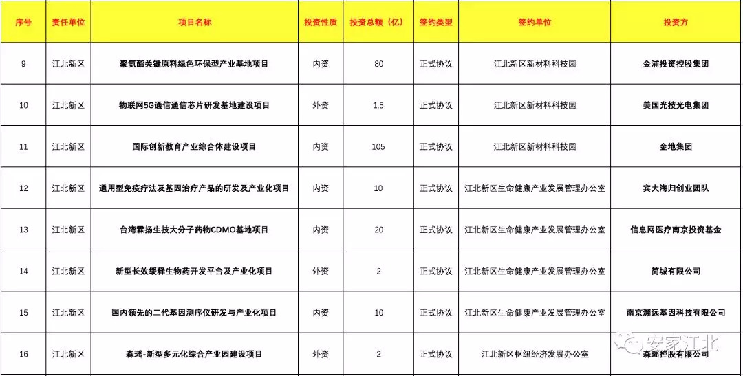 此外:六合区和浦口区,也分别有3个项目上会签约
