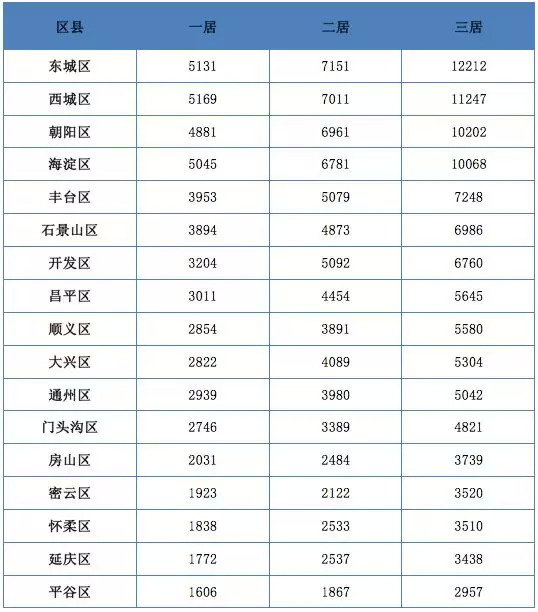 ▼ 表1 北京市2018年二季度各区县平均租赁价格(元/平方米 月)