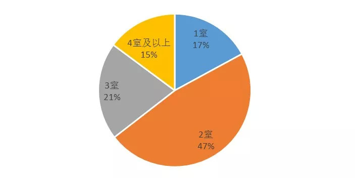 从监测户型来看,租赁住房户型以中小户型为主,2室户型占比最高,达到47%,1室户型占17%。