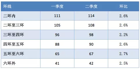 从环线来看,租金价格从内环向外环逐渐递减,二环内租金高达114元/平方米·月,而六环外的租金只有42元/平方米 月。
