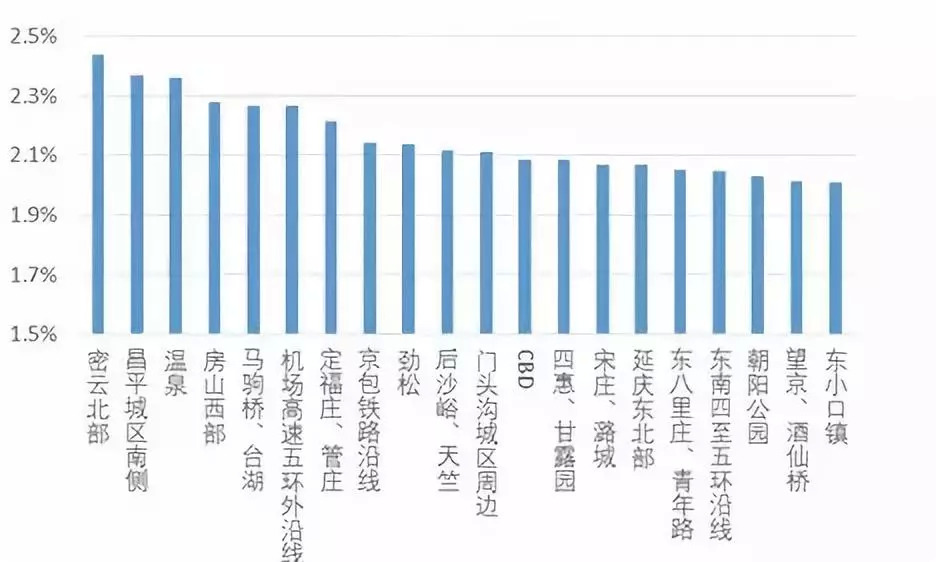 ▲ 图6 北京市住房租售比较高板块(top20)(2018年二季度)