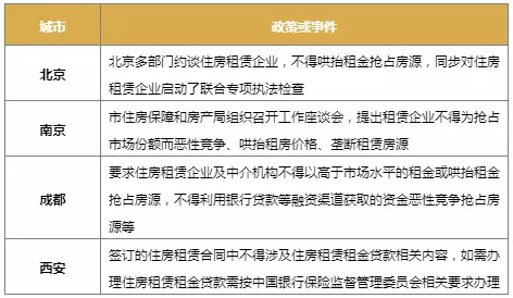 8月北京市住建委联合北京银监局、北京市金融局、北京市税务局等部门集中约谈主要住房租赁企业负责人,明确提出规范住房租赁企业行为的“三不得”“三严查”。对住房租赁企业从各方面提出规定,不得恶意抢占房源、哄抬租金等行为,有助于规范住房租赁市场,建立透明公正的住房租赁市场秩序,对全国也将直接形成示范效应。
