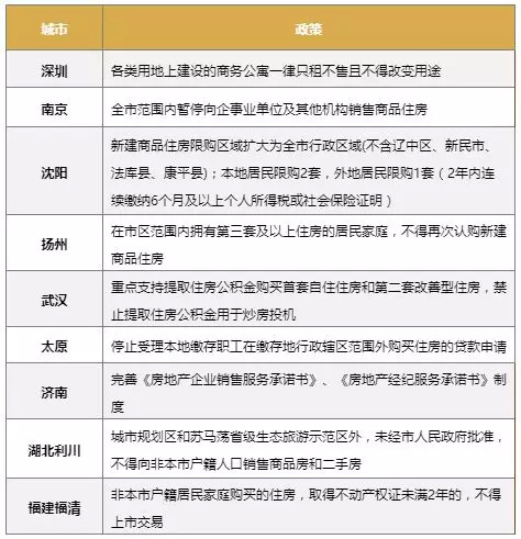 点评:随着住建部强化问责,热点城市将继续通过出台公积金保障等相关措施保障居民合理购房需求。同时,作为遏制投机炒房最有效的手段限购(个人、企业)、限售、提高社保年限要求、严查假离婚等方面的政策仍会持续发力。