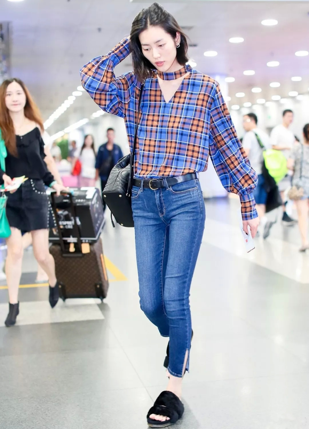 追求个性的girl可以借鉴大表姐这件格纹衫,黄紫蓝多色相撞吸睛但又不突兀,V领凸显锁骨,复古泡泡袖提气质同时还能掩盖拜拜肉。