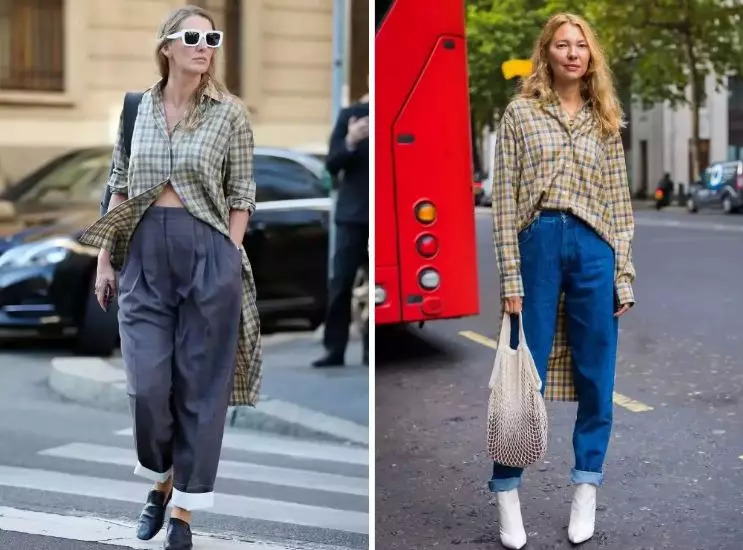 格纹的大小也能瞬间转变风格。同样是配牛仔裤,大格纹就显得比较成熟帅气。