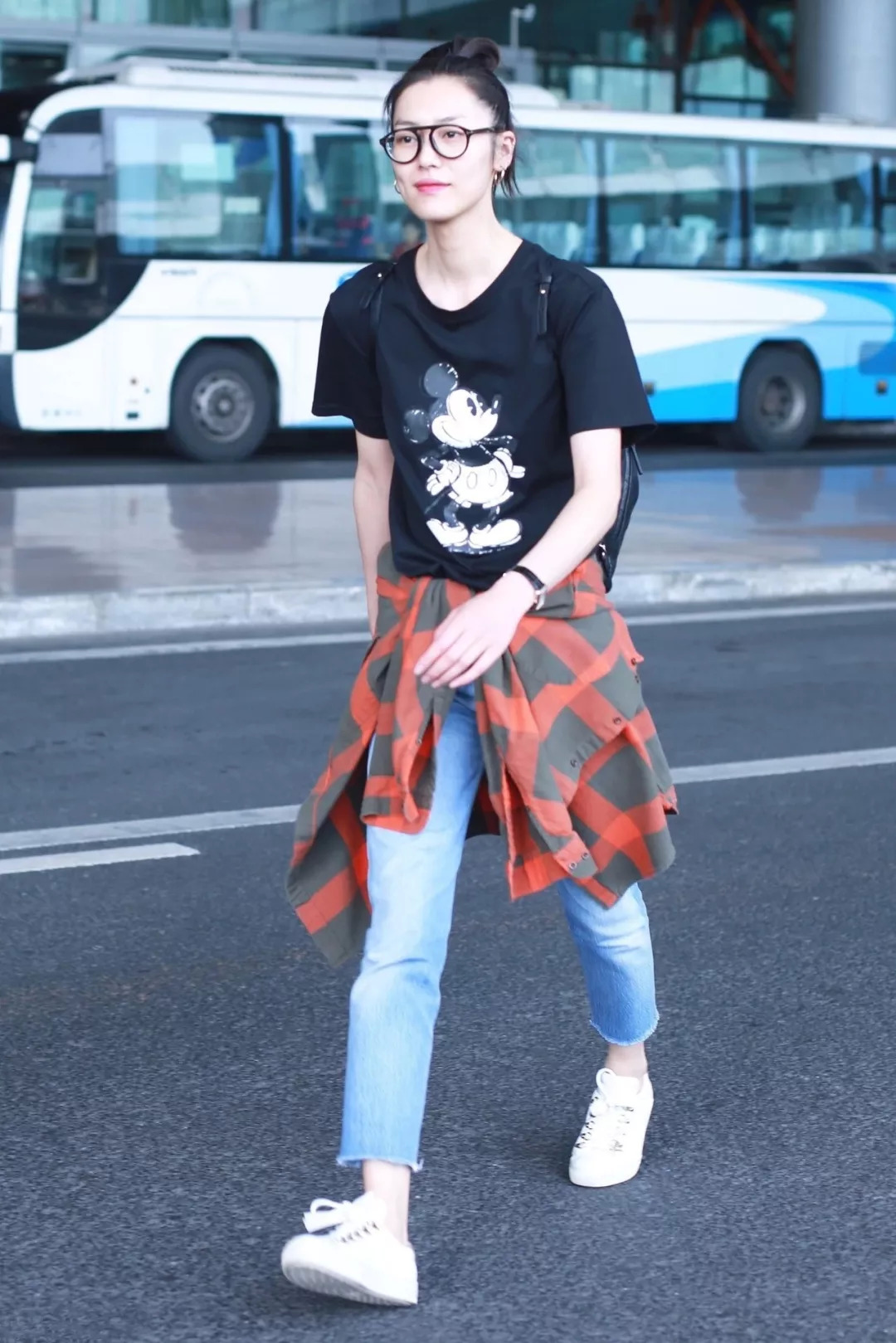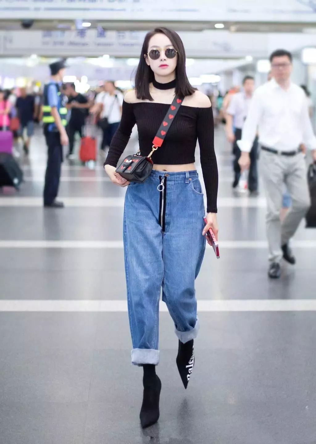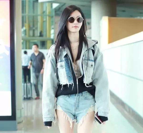 奚梦瑶则展现了另一种风格的叠穿,蕾丝吊带+运动风外套+牛仔外套,又酷又甜。同样搭配同色系的牛仔裤,让身上的颜色不会过多,过于复杂。