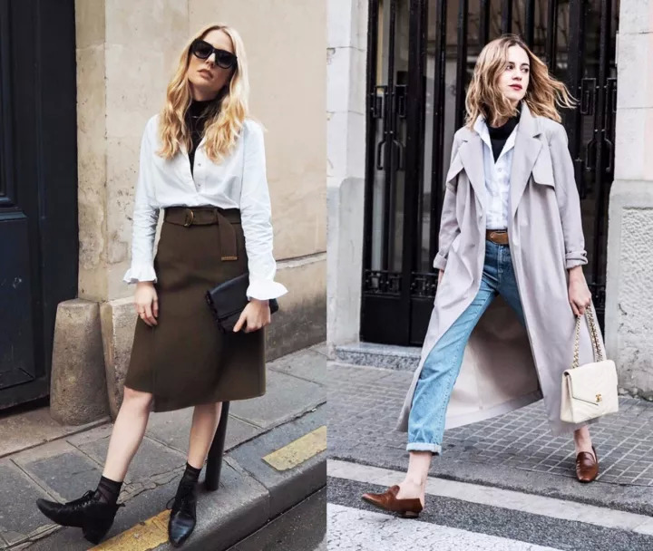 在衬衫里穿高领毛衣也是时尚博主们常用的穿搭招数,既保暖又休闲,最简单的黑白配时髦百搭不出错。