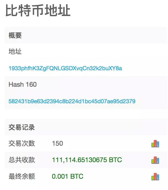 在2014年以前,“Wallet:1933”曾经拥有11.1114万个比特币,位居“比特币富豪榜”榜首。