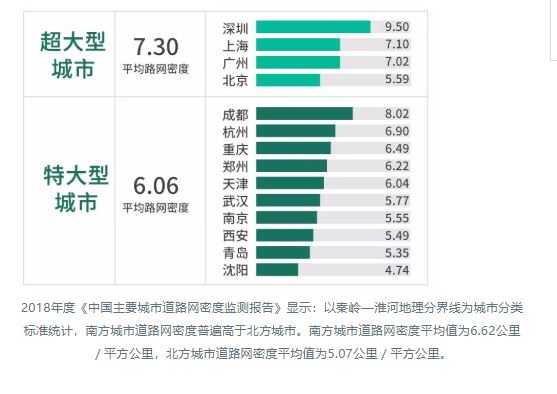 虽然路很宽,但是道路密度却在一线城市中倒数第一,远低于深圳的平均水平。