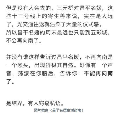 两年前的爆款文章《昌平名媛生活指南》就曾指出,每周末都会有大批的昌平名媛进五彩城“朝圣”,这是她们能够到达城市最南的位置,什么西单、三里屯、工体对她们来说只是存在于朋友圈中的ins风照片而已。