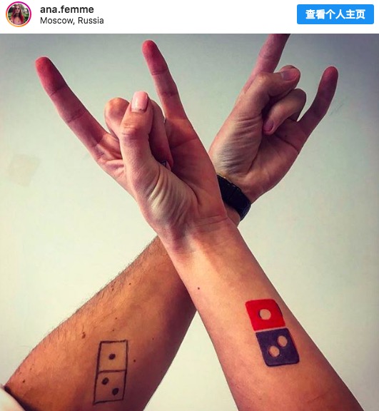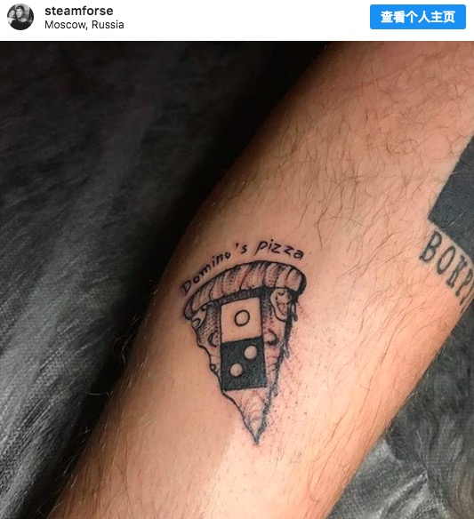 许多俄罗斯用户开始在社交网络上展示他们的纹身:胳膊上、脚踝上、脖子上,图案不止是简单的logo,还有各种夸张的披萨花纹。