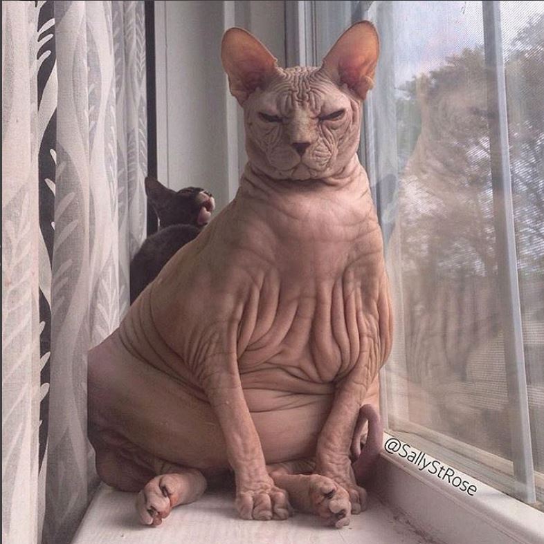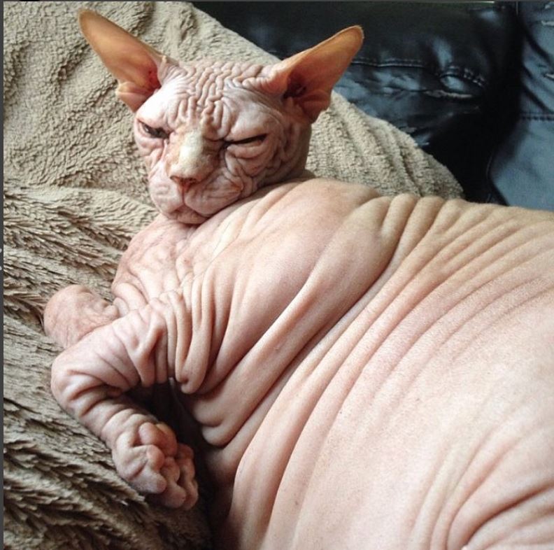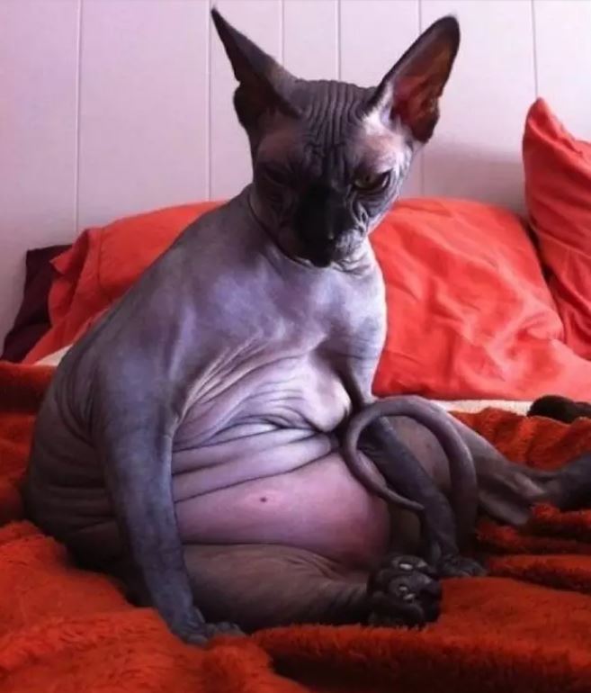 人类胖了还能穿衣服遮遮丑,无毛猫有什么?它们只能袒露着脂肪,任由人类指指点点。
