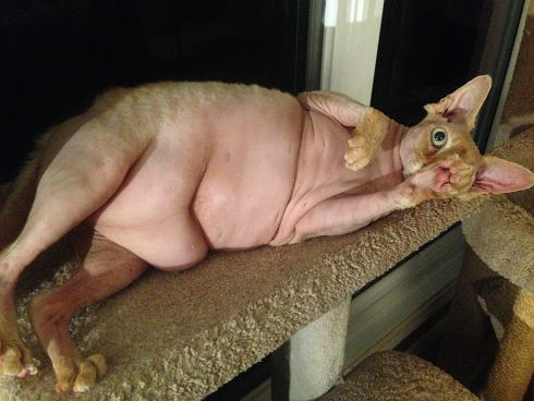 胖了之后,无毛猫再也无法骑在人类头上拉屎了。