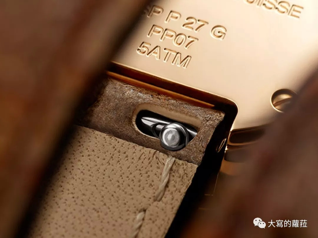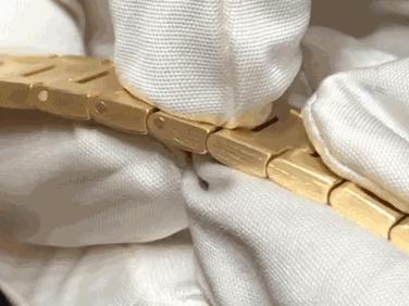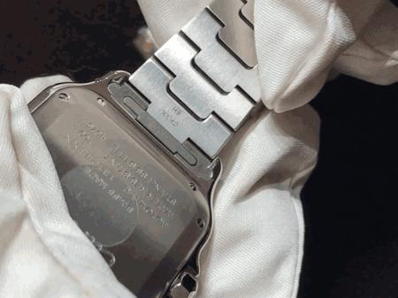 卡地亚比较独特的一点还包括链带的链节都可自行拆卸,这个称为SmartLink的系统只要按压链节就可取出固定拴,轻易自行移除表链链节更改链带长短,除了苹果Apple watch有相似结构外,这样的设计相当少见。