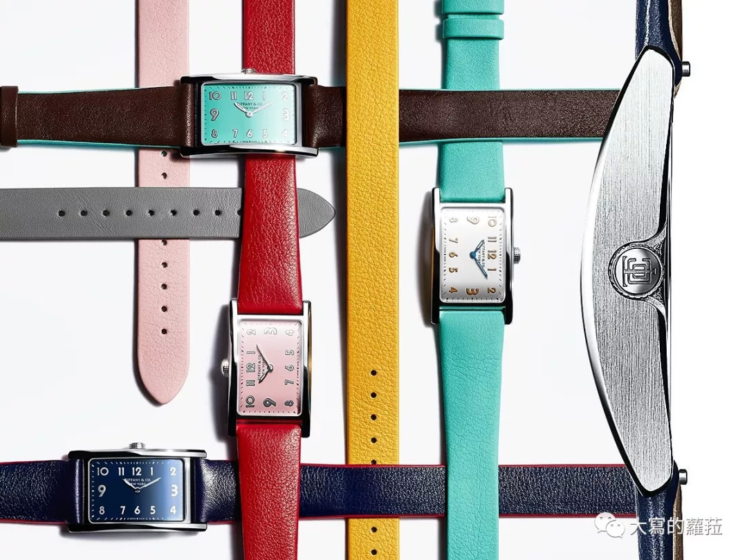 Tiffany以横向显示时间的East West系列在2017年推出全新款式时,在迷你小尺寸的款式中也采用了弹簧耳拴式的表带更换机制,可随心所欲更换颜色、单圈或双圈不同长短的表带。