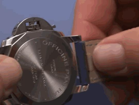 △ 沛纳海的表带快拆动作。
