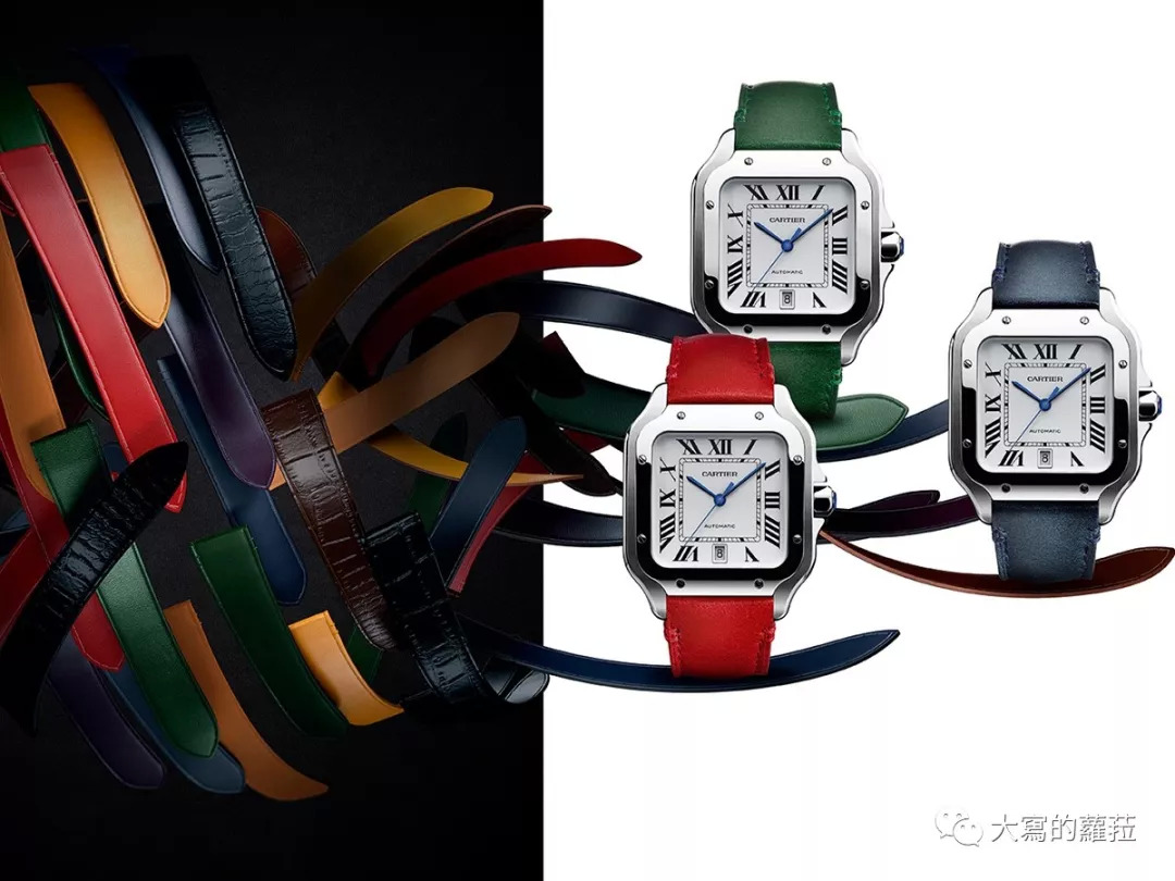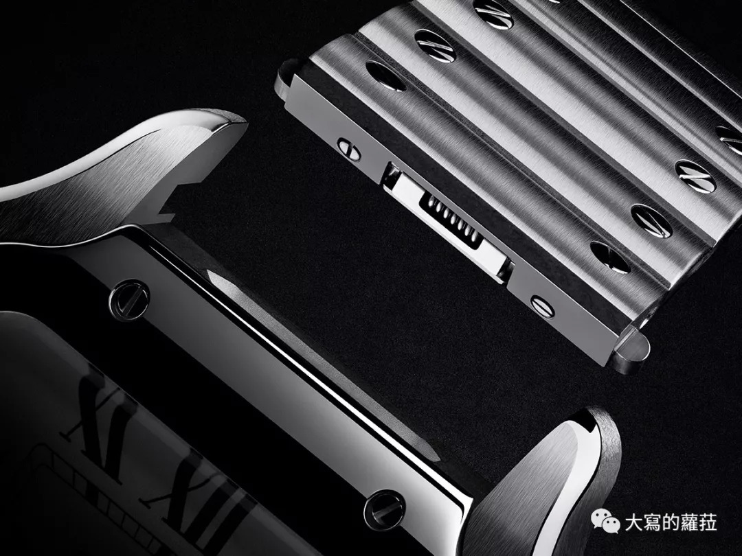 前文提到万国表早在2009年便已采用了表带快拆系统,这套快拆系统由卡地亚专利授权万国表使用,卡地亚自己则直至近年才推出相似的表带快拆系统。卡地亚2018年时在全新Santos系列上搭载了专利的QuickSwitch系统,快拆系统的咬合卡榫等结构完全隐匿在表壳与表带边缘。