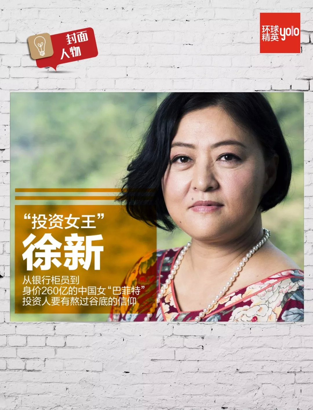 作为一位女性投资人,徐新具有的敏锐的市场嗅觉、坚毅果敢的决断和强烈的好胜心,丝毫不输于男性,被美国《商业周刊》杂志评为“亚洲最具影响力的25人之一”“亚洲之星”,被福布斯评选为“中国十大最佳创业投资人”。