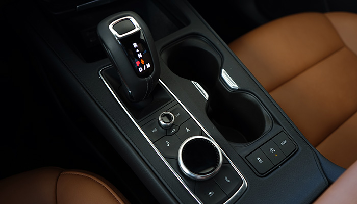 传动装置为通用自行研发的9挡手自一体变速箱,前5个挡位齿比相当绵密,应对绝大多数城市工况时的升挡很是积极,齿轮比也是为了燃油经济性做考虑,故舒适模式下的降挡动作会略微迟涩,运动模式稍有改观。正常通勤驾驶轻松自在,坐在车内无法想象这是一台风阻系数为0.38Cd且车重接近1.8吨的四四方方型SUV。